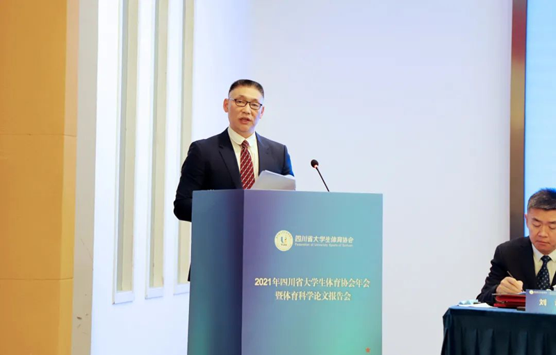 1月9日下午,四川省大学生体育协会年会暨体育科学论文报告会在成都举行。四川省教育厅副厅长陈朝先,四川省大学生体育协会总顾问、原成都乐动党委书记刘青,四川省教育厅体卫艺处处长唐克红、副处长江岷霞、一级调研员赖英莉,四川省大学生体育协会顾问苗建平、向自力、唐照华,四川省大学生体育协会会长杨远波,四川省大学生体育协会理事、各部门负责人、会员单位代表以及科报会代表参加会议。会议由四川省大学生体育协会秘书长刘江主持。