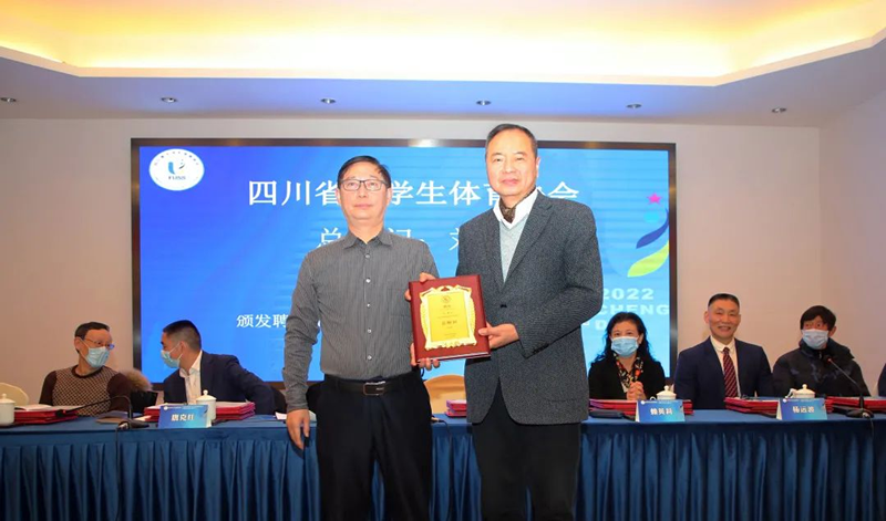 四川省教育厅体卫艺处处长唐克红为协会秘书长、副会长单位授牌,为秘书长、副会长颁发聘书。