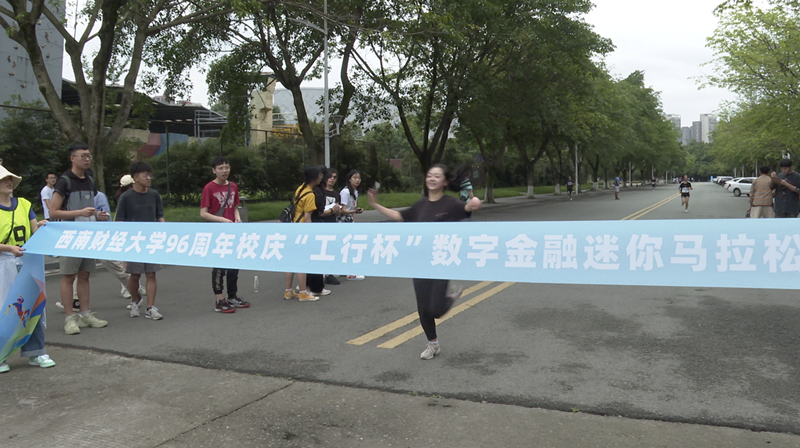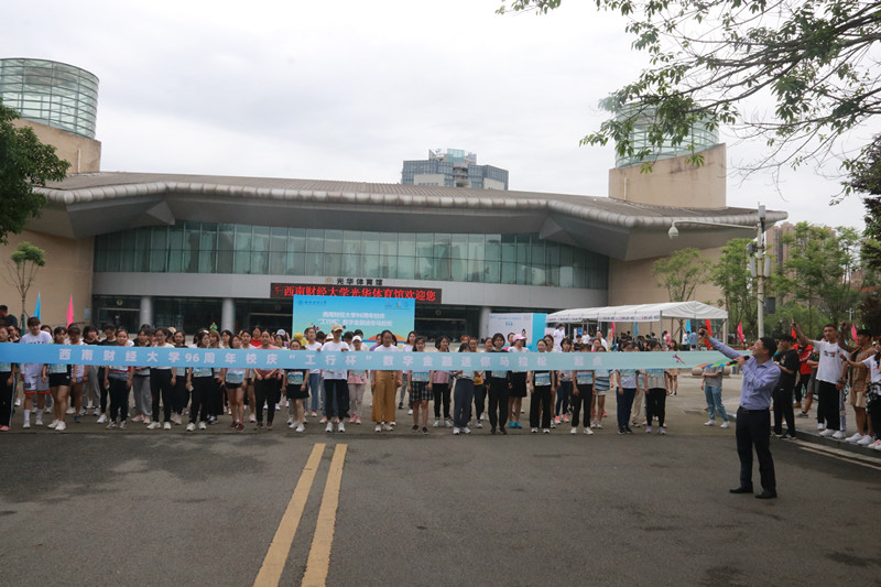 上午10点10分,杨远波、王刚分别为迷你马拉松赛男女参赛选手鸣枪,运动员从体育馆正门出发,经学生活动中心、通博楼、格致楼方向的创业大道跑两圈,再回到体育馆正门,全长4.21公里。途中设置了3个应急救援点,全程保障师生的健康安全。赛道上的师生宛如一道从黄浦江畔飞跃浣花溪旁点亮柳林华章的历史之光,照耀着西南财大96载弦歌不辍、兴学报国的光辉奋斗历程。活动最后,张邦富副校长和何晓涛行长为迷你马拉松男女前十名颁发了奖状及奖品。整个活动在欢快祥和的气氛中圆满落幕。